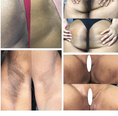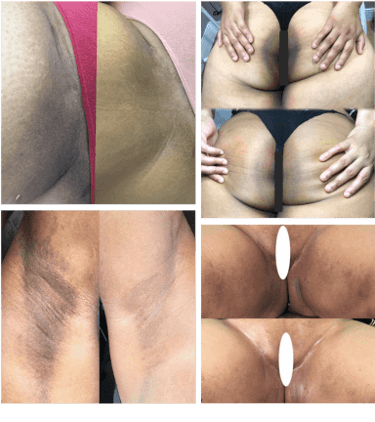 Em até 21 dias, você pode ver a uniformização do tom da pele da virilha/vulva externa em 80% ou mais